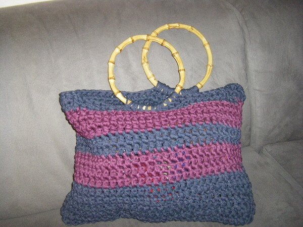 Tasche Aus Hoooked Zpagetti Mit Bambusgriffen